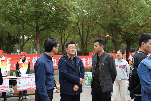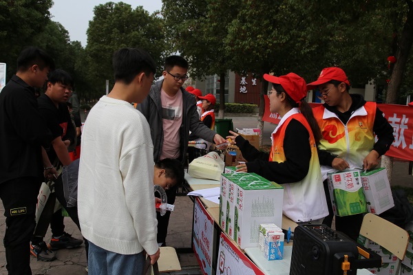 9时许,机关第二党支部党员、学生会成员以及40名“登云小红帽”青年志愿者来到现场认真布置好登记区、体检区、献血区、领证区、营养品发放区、休息区域。