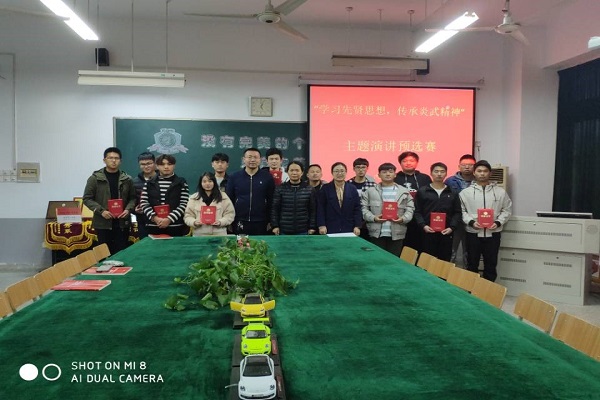 11月17日,由汽车工程系团总支主办,系第十四届学生会承办的“学习先贤思想,传承炎武精神”主题演讲比赛在系部会议室举行,系学工主任王争和全体辅导员担任比赛评委,18名经过班级选拔的同学参加了比赛。