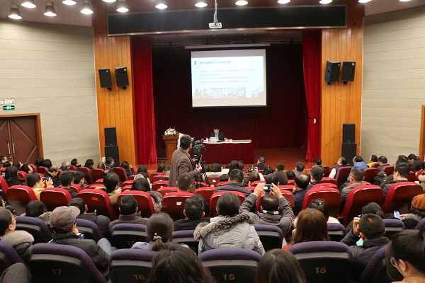 12月22日,学院特邀江苏省考试院院长袁靖宇来我院作题为《国家教育方针关照下的高职教育发展》专题报告。学院董事长林赐农、执行董事李先立、登云公司董事长潘奇威、荣誉院长郑家泰,院领导钱勤元、张进明、王振州、徐伟、陈长伟,各系教师、行政干部近200人聆听了报告。报告会由张进明执行院长主持。