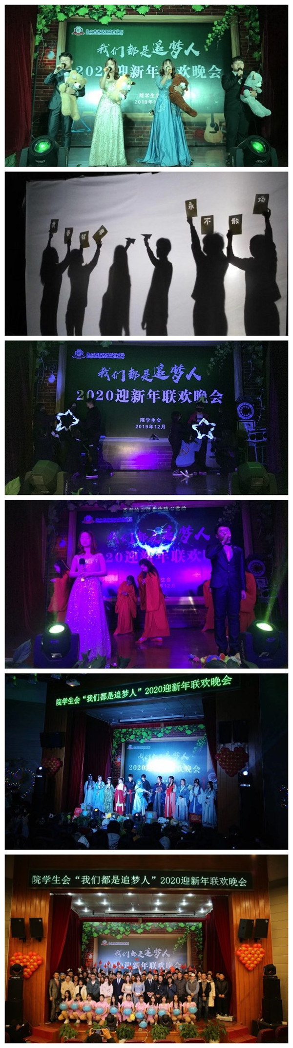 12月30日晚,我院“我们都是追梦人”2020迎新年联欢晚会在多功能厅举办,晚会邀请了各部门、各系主管、教师代表观看演出,与近300名学生一起共迎新年。晚会由院学生具体会承办。