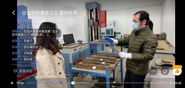 3月28日上午,建筑与设计学院“企业空中课堂”系列活动第三次直播在设计学院校外实训基地--苏州新地建材工程质量检测有限公司举行,直播主题为建筑材料的检测。学院百余名师生在线同上一堂课, 建筑与设计学院徐昕副院长和苏州新地建材工程质量检测有限公司占飞总经理、张正纯主任全程参与直播,进行指导。