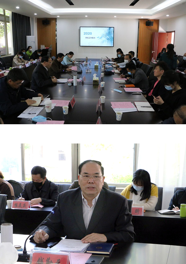 会上,钱勤元校长首先传达了董事会对学校2020年重点工作的指示精神和李先立执行董事对校园防控工作及2020年重点工作的具体要求。他指出,2020年学校重点工作要从十个方面全面推进。一是打赢新冠肺炎疫情阻击战,建设安全卫生校园;二是深化教学改革,提高人才培养质量;三是加强引才育才用才,打造高素质教师队伍;四是深化产教融合,推进校企协同育人;五是探索继续教育转型发展,增强服务区域经济能力;六是营造良好育人氛围,提升学生综合素质;七是完成招生任务,强化财务管理;八是制订事业发展新规划,提升学校办学水平;九是强化后勤保障能力,提高管理服务质量;十是融入中心工作抓党建,引领学校改革发展。他强调,要统筹推进疫情防控与学校改革发展,在严防严控做好学校疫情防控工作的同时,圆满完成各项工作任务。