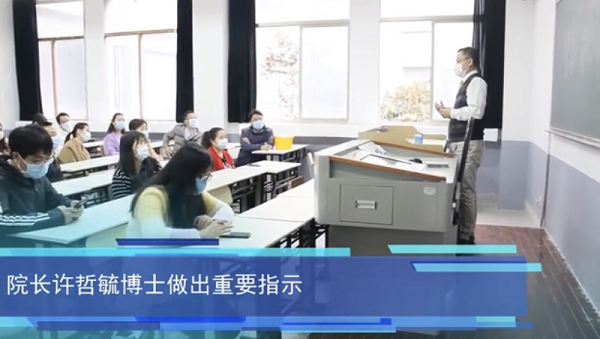 演练结束后,许哲毓院长作演练点评,对疫情防控演练的细致周密部署给予了肯定,对演练环节中存在的不足提出了指导性建议。他表示,全院上下要高度重视,认真梳理演练过程中发现的问题和不足,进一步完善疫情防控应急处置预案,规范处置流程,提高防范能力;要做好全院师生疫情防控宣传教育,确保每一位教师、每一位学生熟知防控要求和防控流程,保障开学后教育教学安全平稳、有序进行。