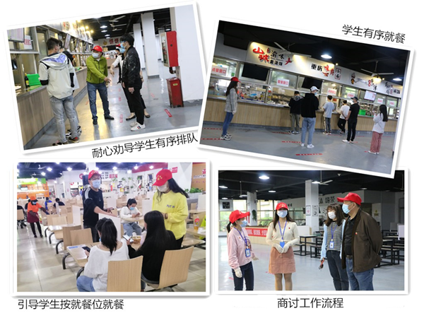 通识教育中心党总支和机关党总支志愿服务队协助总务处做好学校三个食堂的就餐秩序维护和人流管控等工作。他们耐心劝导、科学引导、任劳任怨,大家用行动践行了初心使命,用汗水汇聚了责任担当。