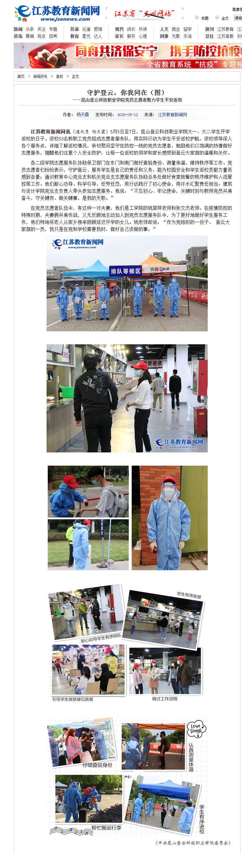 江苏教育新闻网报道beat365党员志愿者聚力学生平安返校