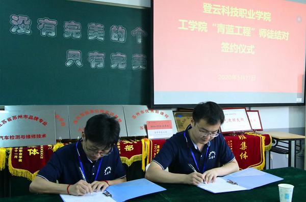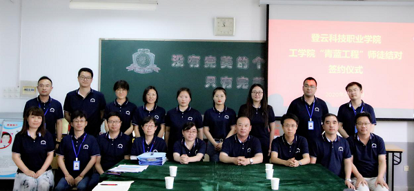 会上,卢美鸿和薛峰老师、时强兵和李珂老师、王霞成和蔡佳蓉老师、褚焕萍和王苗老师完成了师徒结对,并签订了“青蓝工程”合约。