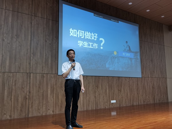 为加强辅导员职业能力建设,进一步提升辅导员队伍的专业化、职业化水平,6月18日,由学生处主办、辅导员发展中心承办的“教练型”辅导员第一讲专项培训会在J3-125如期举行,张进明执行校长、徐伟副校长出席培训会,各二级学院学生工作负责人、全体辅导员及学生处相关人员参加培训。