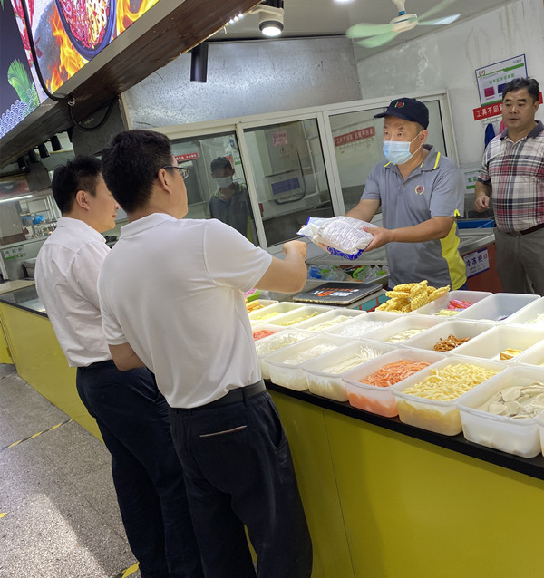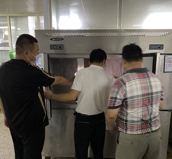 徐副校长一行从学校就餐环境、后厨卫生、原材料采购、储存、食品加工、索证索票等环节,进行了全面、仔细的现场检查。