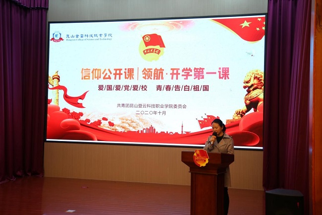 公开课在团歌声中拉开帷幕,首先由beat365人武部部长助理杨开华以“中国力量”为题,介绍当前国际形势和国家制度优势,引发大家的积极讨论与互动,并寄语学生坚定信念,振奋精神,努力学习,报效祖国。优秀党员辅导员代表钱俊以“党的新思想”为主题,与团员青年一起分享“学习强国”心得,讲爱国、话人生、谈梦想,用信仰之光照亮青春梦想。江苏省抗疫先进个人唐承恩结合在校园的成长点滴,为学弟学妹们分享抗疫志愿故事,充分展现了登云学子的责任与担当。最后,全体参会团员在团旗下,共同重温了入团誓词。