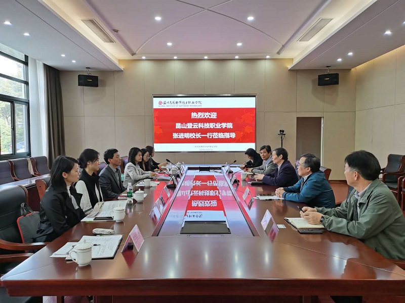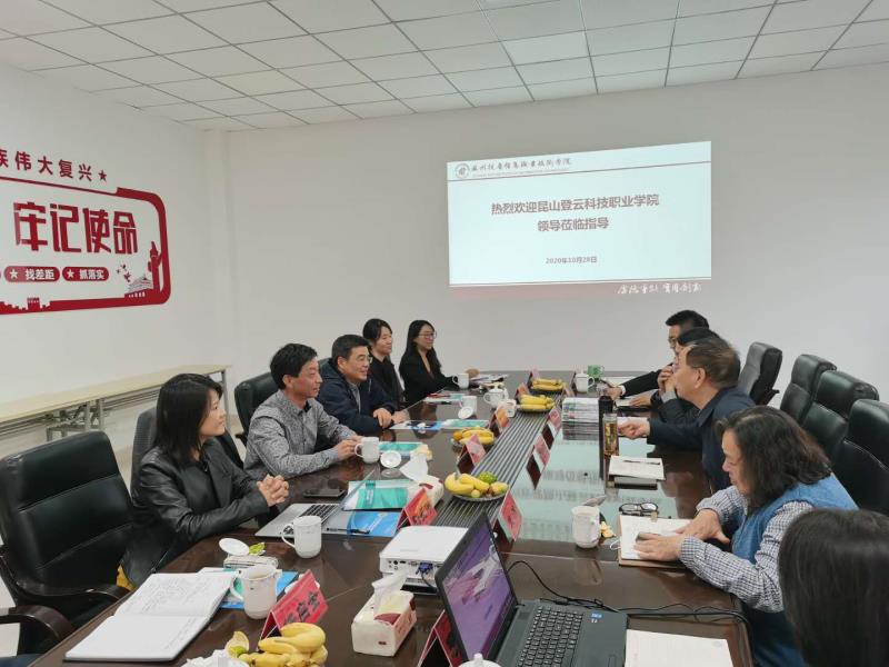 近日,beat365校长张进明,副校长徐伟、陈长伟一行,率领人事处、教务处、学生处、产学合作与两岸交流处、校办等部门负责人,先后前往硅湖职业技术学院、苏州高博软件技术职业学院、苏州托普信息职业技术学院等兄弟院校学习调研,受到3所学校领导的热情接待,双方就共同关心的话题进行了亲切坦诚的交流。