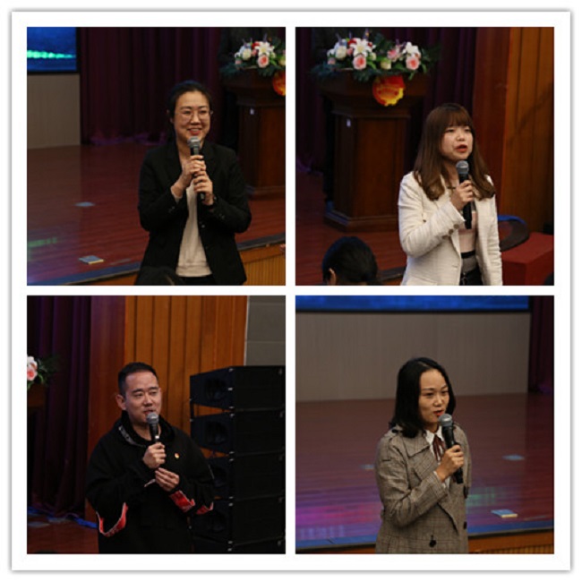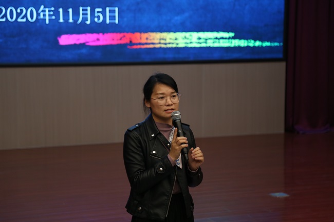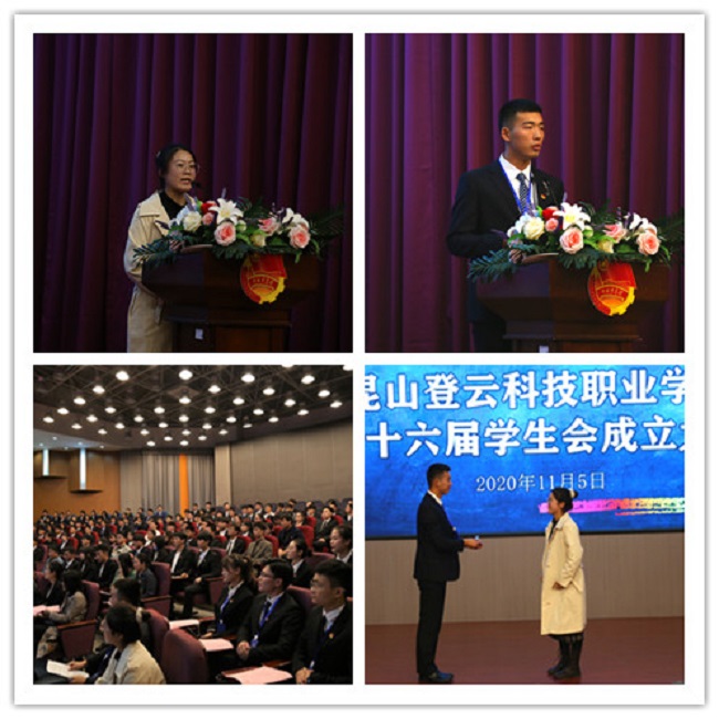 学生处副处长刘咏芳作了讲话,她首先对第十六届校学生会的成立表示热烈的祝贺,她期望全体团学干部必须要有真诚奉献的服务意识,勇于担当的责任意识以及全面发展的成才意识,要将自己的团队当作一种荣誉与责任,她让大家思考:自己是否热爱学生会;希望未来的学生会成为什么样子;希望自己在一年之后得到什么收获。最后,她希望同学们在困境中寻找到自己的潜力,都能学会包容和理解;加强自律,认真负责,砥砺前行。