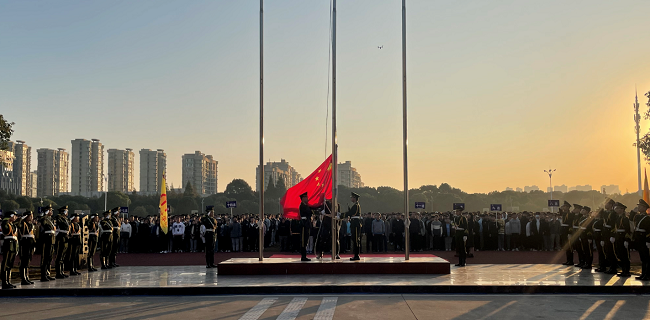 张进明校长、钱勤元书记为二级学院授旗。