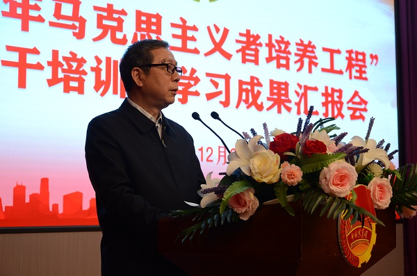 校党委副书记、副校长徐伟致辞,他首先代表学校党委和行政,对出席本次典礼的各位领导表示热烈的欢迎!对青马工程骨干培训班的成功举办表示热烈祝贺!他指出在校大学生要牢记“一二·九”爱国运动历史,进一步增强责任感、使命感,做新时代出彩青年。