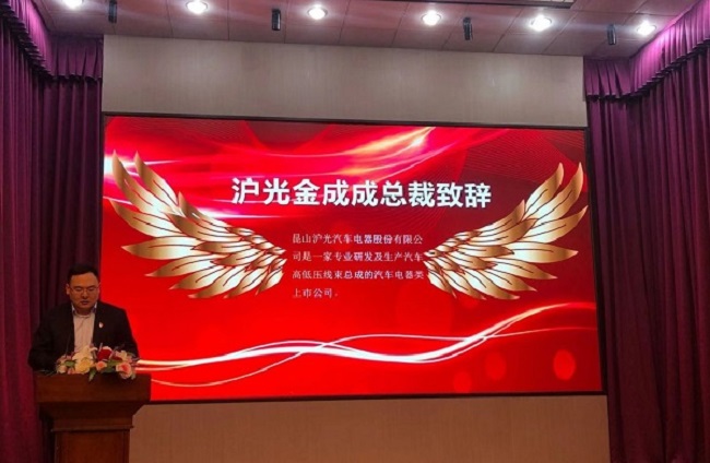 金成成为大会致辞:他首先代表沪光公司感谢beat365领导、老师对沪光的大力支持,同时也对同学们在企实践的积极表现表示肯定和赞扬,并期待沪光和登云深度合作。