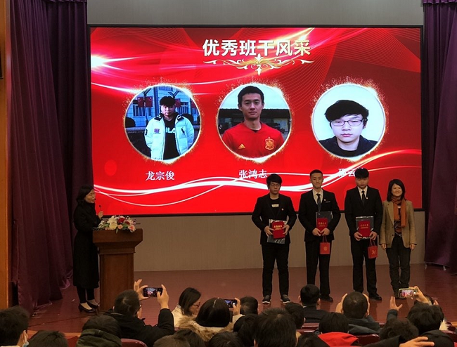 陈长伟和朱雪青分别为实习优秀学生代表及班干颁发“优秀实习标兵”和“优秀班干”荣誉证书及奖品并合影。