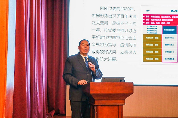 徐伟向大会宣读了李先立执行董事的题为《齐心协力,闯民办院校新发展之路》的函电。函电中特别肯定了学校“十四五”战略地图的规划,制定了2020学年的重点工作,从增值、增收、增效、增强的层面,定位了学校“成就学生未来、助力区域发展”的使命。李先立希望学校从“领导力、执行力、团结力”着力,齐心协力闯出登云后示范之路,登云需要有“创新力”,闯出民办高职不寻常发展之路;登云需要有“持续力”,闯出台资办学产教融合的特色之路。