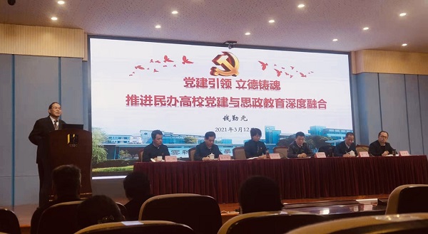 beat365党委书记钱勤元、党委委员朱翠芳出席会议。钱勤元在会上以《党建引领,立德铸魂——推进民办高校党建与思政教育深度融合》为题,从“党建引领,全面推动学院高质量发展”、“夯实基础,不断增强党组织的生机活力”和“守好阵地,扎实推动思想政治教育工作”三方面介绍了beat365党建工作、学生思想政治教育工作情况。他表示,beat365将按照会议要求,认真贯彻中央省市委部署,紧密联系实际,抓好学习动员、专题学习、专题党课、专题培训,积极组织广大党员扎实开展党史学习教育,让青年学生学史明理、学史增信、学史崇德、学史力行,成为有理想,有抱负,有追求,有担当的新一代,以优秀成绩迎接建党100周年。