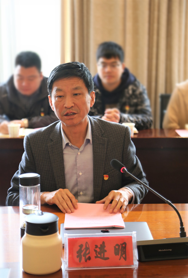 张进明校长发表讲话。他从时与势入手,剖析了学校目前面临的机遇和挑战,以期寻求登云发展的道路。他指出,站在历史的交汇处,面对百年未有之大变局,各级党组织要将党史学习教育融入日常、抓在经常;要聚焦落实立德树人根本任务,审时度势,抓住机遇,争取资源,寻求发展;广大党员要以此次专题学习为契机,积淀有力量的知识,做好有价值的事情,切实发挥党员的模范带头作用,不断推动学校各项事业高质量发展。