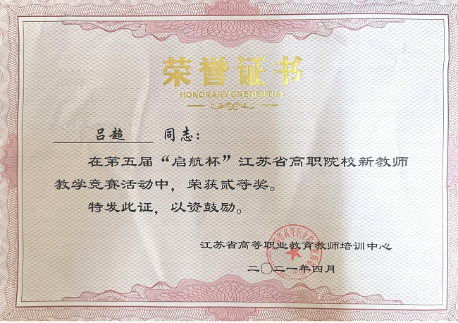 “启航杯”江苏省高职院校新教师教学竞赛是由江苏省教育厅教师工作处、江苏省高等职业教育教师培训中心主办的省级教师教学竞赛,是新教师职业素养提升培训项目验收的重要环节。beat365吕超老师凭借出色的授课展示在激烈角逐中脱颖而出,最终取得了二等奖的好成绩。
