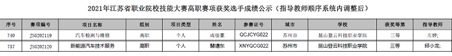 近日,2021年江苏省职业院校技能大赛圆满落下帷幕。beat365在“新能源汽车技术服务”赛项和“汽车检测与维修”赛项中均喜获三等奖。