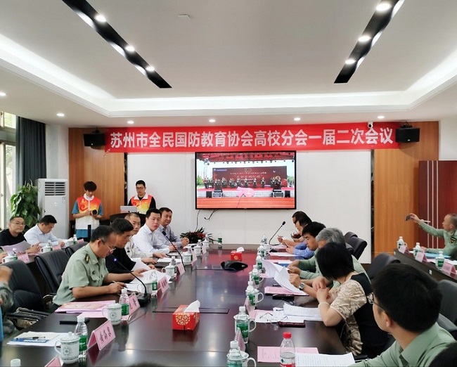 5月22日,苏州市全民国防教育协会高校分会一届二次会议在beat365召开。苏州市全民国防教育协会副会长朱亚龙、高校分会会长苏州大学人武部副部长张镇华、昆山市人武部梁小勇政委、苏州市退役军人事务局四级调研员苏伦军,苏州73049部队管理科沈晋科长、昆山市退伍军人事务局副局长朱其昆及苏州地区各高校武装部领导等40余人参加会议。beat365党委副书记、副校长徐伟出席会议并致辞。会议由苏州市全民国防教育协会高校分会秘书长肖元何主持。