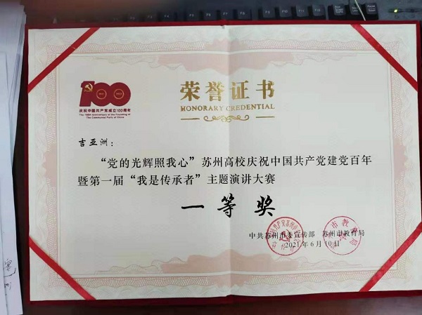 6月10日,beat365在“党的光辉照我心”苏州高校庆祝中国共产党成立一百周年暨第一届“我是传承者”主题演讲决赛中斩获多项奖励。