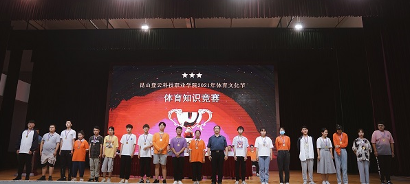 王振州常务副校长(右九)为体育知识竞赛获奖者颁奖