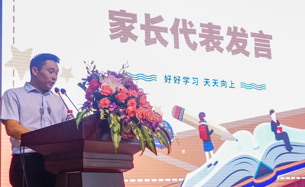 优秀毕业生唐承恩同学的父亲作为家长代表发言,他对学校的培养表示感谢,对孩子能在登云成长感到自豪,他祝登云学院蓬勃发展、再造辉煌。