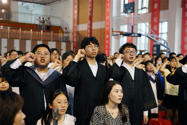 全体毕业生共同宣誓:“铭记母校校训:诚正弘毅,奋进创新;不忘恩师教诲,脚踏实地,自信自强;传承登云精神,坚守理想,奋发向上;担负时代使命,成才报国,铸就辉煌。”