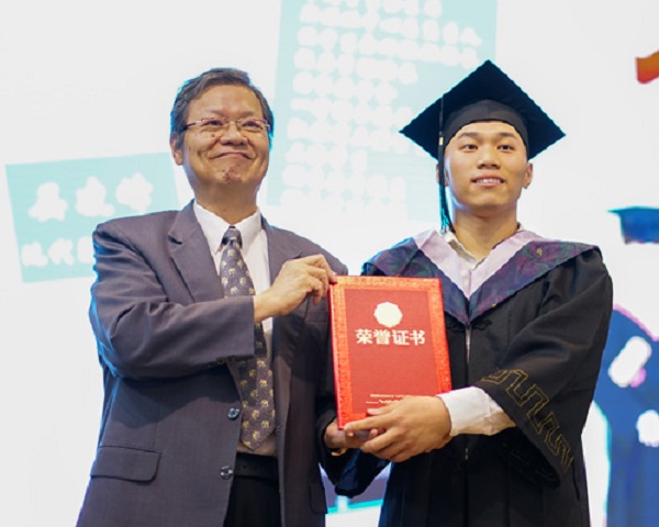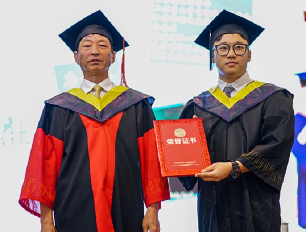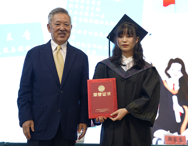 郑家泰荣誉校长为省优秀毕业生颁发荣誉证书