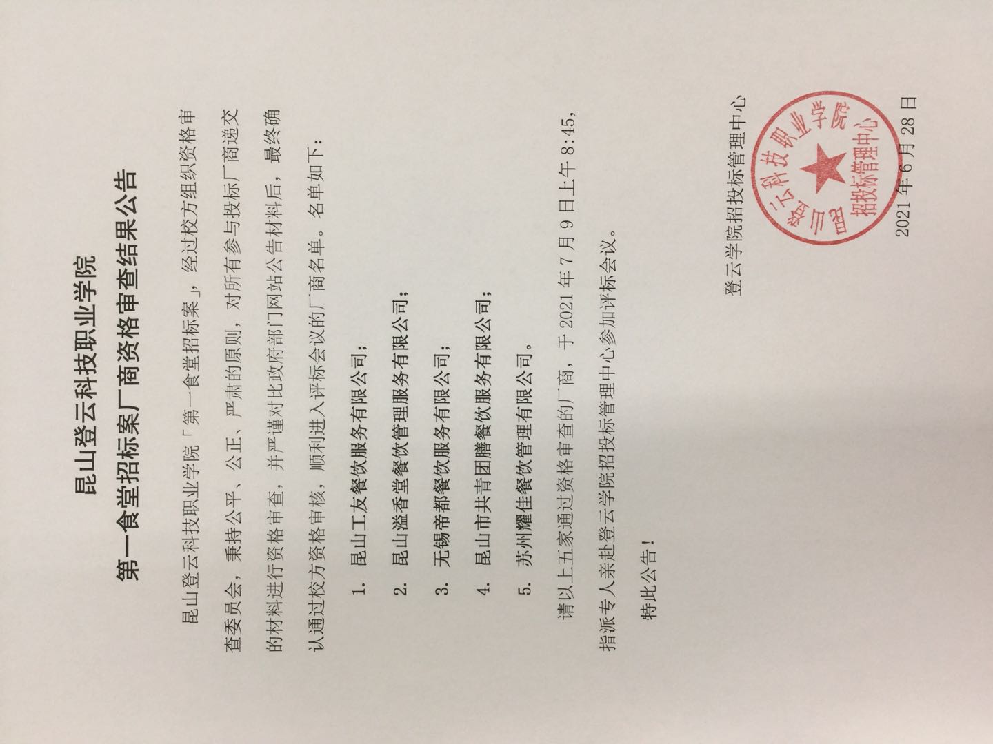 beat365会员官方网站第一食堂招标案厂商资格审查结果公告