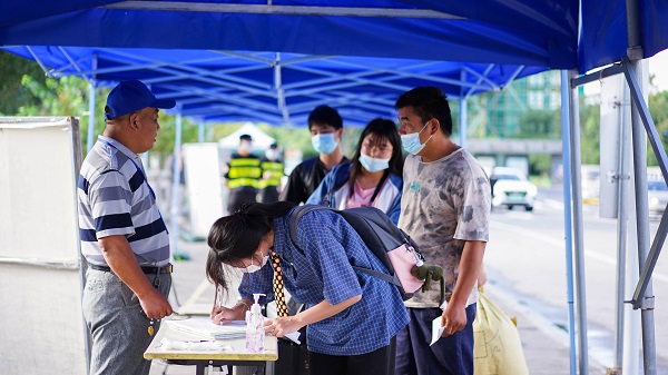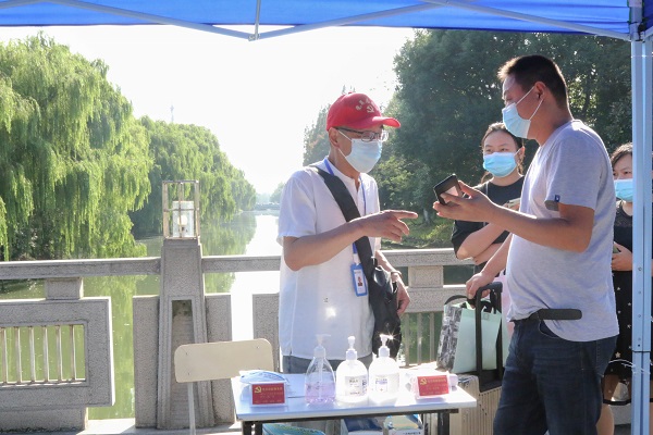 在学校门口,工作人员和志愿者们认真的进行交通引导分流、入校人员核酸检测、苏康码和行程码查验工作,把好新生入校安全第一关。
