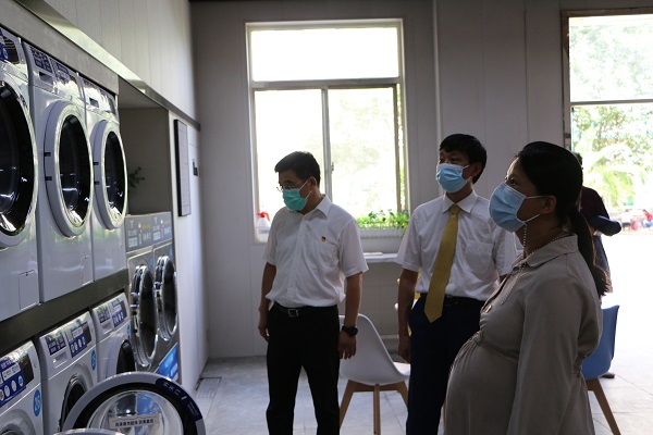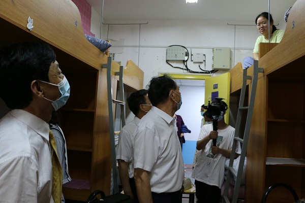 校领导张进明、钱勤元、徐伟、陈长伟和罗瑜赴迎新现场看望新生和新生家长,了解学生报到流程并慰问参加迎新工作的老师和志愿者,至食堂检查食品安全,到宿舍看望入住的学生,鼓励学生尽快适应登云的生活,努力学习,全面发展,实现自己的人生理想,在登云遇到更好的自己。