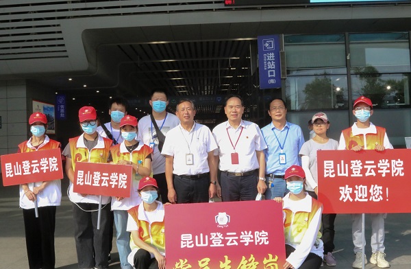 在昆山南站、昆山站、昆山汽车南站校外迎新点,通识教育中心的老师和学生志愿者现场测量体温,引导学生乘坐接驳专车抵达校园。