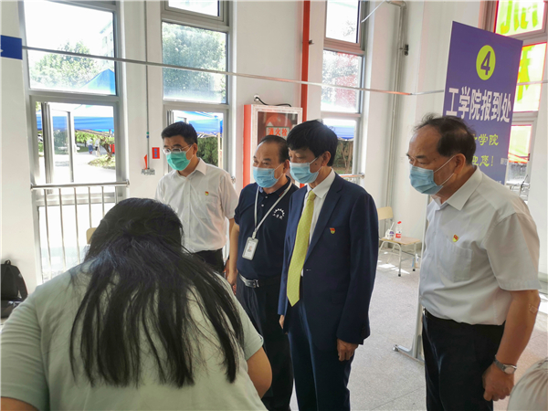 张进明一行对现场迎新的工作人员表示慰问,并与报到的新生和新生家长亲切交流,了解他们报到手续的办理情况,希望新生能够加强对学校的了解,尽快融入校园生活。刘言强就工学院迎新流程及工作部署向校领导进行了汇报。工学院迎新现场井然有序,分工明确,流程快捷,工作人员耐心细致的答疑解惑,党员同志及志愿者们更是冲锋向前,积极主动的搬运行李、答疑解惑。