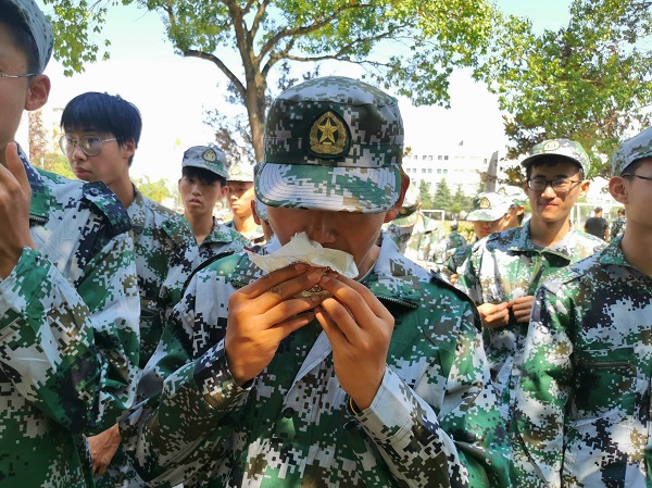 军训现场,刘言强等和军训新生进行了亲切的交谈,“孩子们,中秋节快乐!”、“第一次在外过中秋,特别是外省的孩子们,想家吗?今年中秋我们陪你们一起过!” 现场,同学们每一张幸福洋溢的脸上都挂着感动与喜悦,掌声、欢呼声、感谢声,声声都浸满了甜蜜的味道。