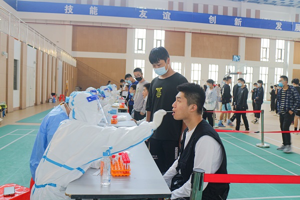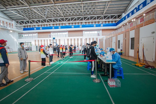 为确保核酸检测工作安全有序开展,学校防控新冠肺炎疫情工作领导小组高度重视,精心安排,制定了详细的工作方案。本次核酸检测采集工作在大学生活动中心进行,师生职工错峰分批前往现场,按照工作人员和志愿者的指引提前登记好个人信息,戴好口罩间隔一米有序排队等候。参检的师生职工依序进行口腔咽拭子标本采样,即采即走。整个过程有条不紊,秩序井然。