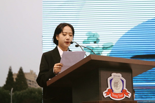 “从今天起,我光荣的成为了一名登云学子,我在此庄严宣誓:我将胸怀祖国,忠于人民;尊师爱校,懂得感恩;勤于学习,勇于实践;遵纪守法,明礼诚信;团结友爱,兴我登云;弘扬校训精神,努力成为具有工匠精神、可持续发展能力、业界乐用的技术技能人才!”在建筑与设计学院2019级朱鹏飞同学和现代服务学院2019级周伶妍同学的带领下,全体新生庄严宣读入学誓词。誓词中的“校训精神”作为考验大家对学校的熟悉度,设置为有奖问答环节,圈粉新生。