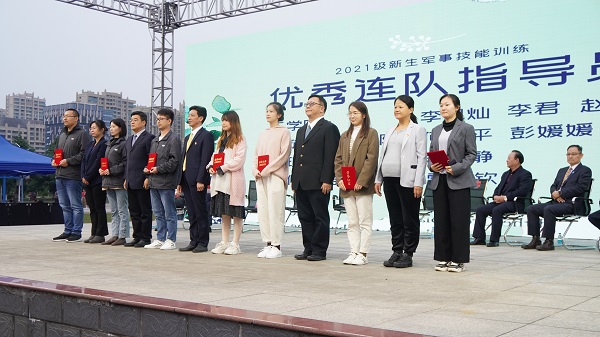 校领导为军训优秀指导员颁奖