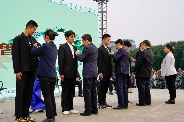 各二级学院院长为新生代表致赠学院院徽