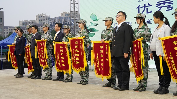 校领导为军训先进集体颁奖