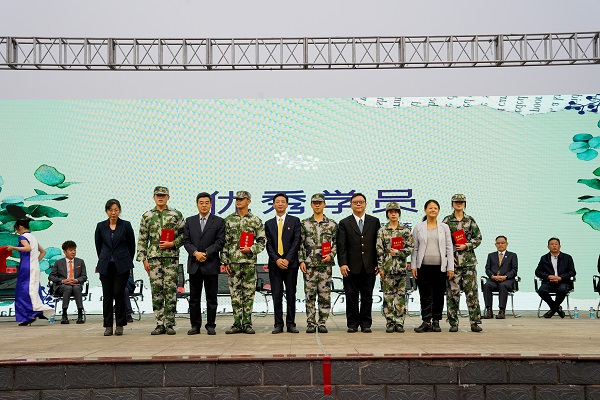校领导为军训优秀学员颁奖