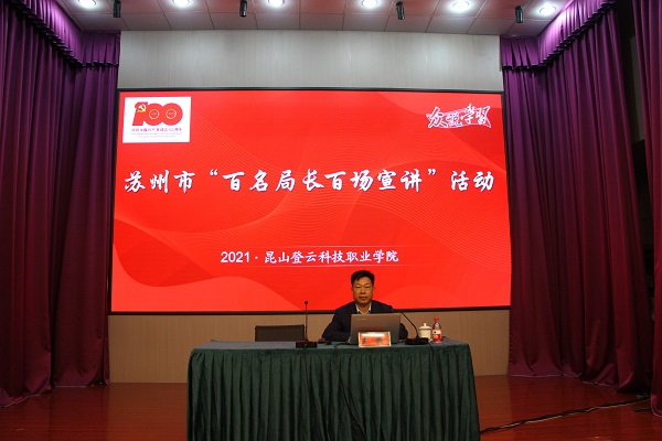 王豪以《百年大党 风华正茂——从百年党史中汲取现代化建设的力量》为主题,从开展党史学习教育的原因和意义、百年辉煌历史和从党史中汲取昆山现代化建设前行的力量三方面进行了宣讲。