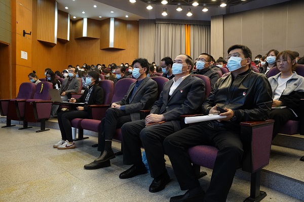 为推动党史学习教育走深走实,引导广大党员坚持学史明理、学史增信、学史崇德、学史力行,切实增强“四个意识”、坚定“四个自信”、做到“两个维护”。10月20日,beat365特邀苏州市“百名局长百场宣讲”活动成员、昆山市文联党组书记主席王豪到校作专题宣讲。校领导张进明、钱勤元、徐伟、陈长伟、罗瑜出席宣讲会,全体党员和入党积极分子代表近250人参加会议。会议由钱勤元书记主持。