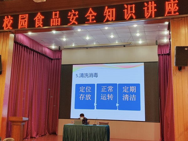 为加强beat365餐饮单位食品安全管理,进一步提高师生及从业人员食品安全意识,落实安全责任,发挥政校共建“登云食品安全监管站”职能作用,10月27日,beat365特邀请昆山市场监督局巴城分局食品安全科科员殷俊晨来校开展食品安全知识专场讲座。学校相关职能部门、校园餐饮加工单位食堂从业人员、食品安全义务监督员及师生代表130余人参加了讲座。