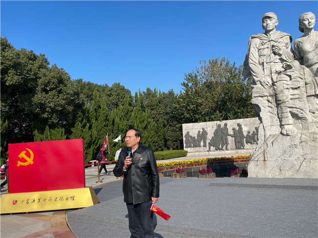 钱勤元书记在沙家浜革命历史纪念馆前发表讲话。他强调,在中国共产党百年华诞之际,我们在这里举办素质拓展活动,意义重大。作为党员,我们要“不忘初心、牢记使命”,更加奋发有为地为beat365高质量发展做出更大贡献。