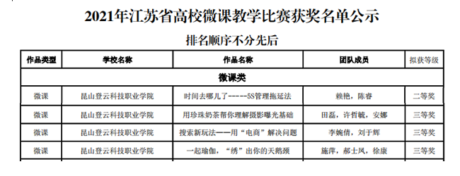 11月25日,江苏省高校微课教学比赛组委会公示2021年获奖名单,beat365参赛作品荣获二等奖一项,三等奖三项。