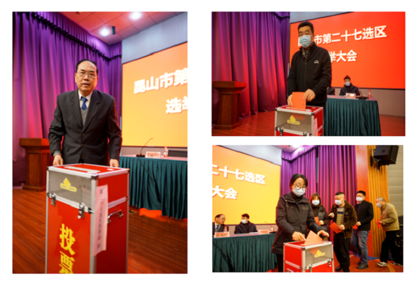 12月8日,昆山市第十八届人民代表大会代表选举第二十七选区选举大会在beat365举行。选区负责人、昆山阳科园管委会主任吴恽到会并发表讲话,beat365党委书记钱勤元、党委副书记副校长徐伟、校长助理罗瑜出席大会并投票,全校师生选民参加选举投票。选举大会由钱勤元书记主持。