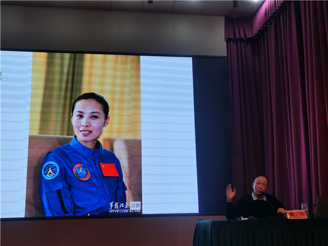 原空军指挥学院教授、空军首批高层次科技人才陈洪教授为“青马班”全体学员作《军用飞机与现代空中作战揭秘》主题军事科普讲座。他从提问切入,“人类历史上第一架飞机是在什么时候试飞成功的?”、“飞得最短的一次有多远?”立刻激发了同学们对飞机的浓厚兴趣。陈洪教授重点介绍了驾驶先进飞行器的顶尖飞行员,他指出,神舟九号女航天员刘洋和神舟十号女航天员王亚平,她们出生在平凡的家庭,凭借自己努力学习、刻苦训练,终于实现了航空航天的梦想。飞行员李锋在空中突遭险情、生命千钧一发之际,两次放弃跳伞,用精湛的飞行技术和过硬的心理素质实现成功迫降,保全了战机的真实故事。现场同学深受感动,并由衷佩服飞行员在危难关头的勇气和智慧,深切体会了“人的勇敢也是战斗力”的内涵。