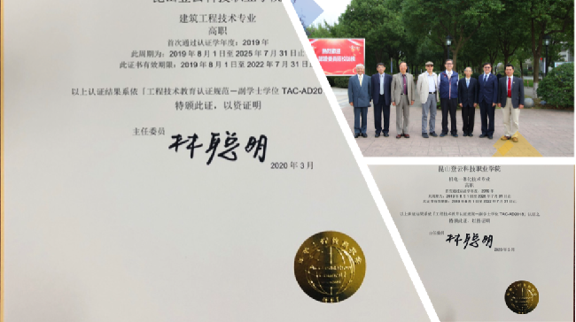 学校采用悉尼协议专业认证范式进行质量控制,确保人才培养目标的达成。工学院、建筑与设计学院已于2020年1月通过专业认证。2021年12月2日,管理学院、现代服务学院通过实地访评,实现学校毕业文凭国际实质等效。两次访评均赢得专家高度评价,台北科技大学原校长李祖添教授表示要将学校简报带回台湾,让他们看看大陆是如何办学的;逢甲大学刘安之教授对学校自主研发的灯板(LightBoard)项目高度赞赏,认为是未来在线教育的重要工具。专业认证极大地提升了学校美誉度。